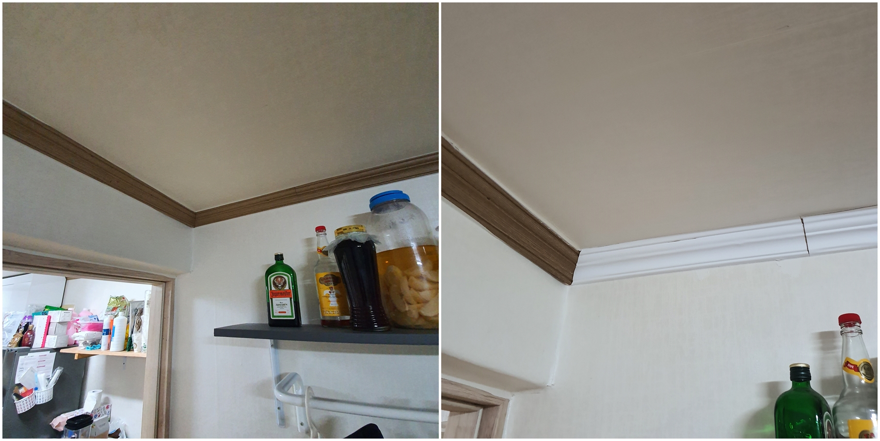 천장 몰딩 시트지 작업 실패 사례라고 봐도